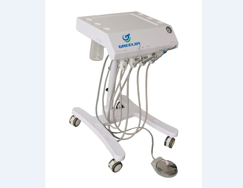 此款轻便式牙科治疗机是一款可灵活移动、造型新颖、便于操作的移动牙科治疗机。产品用材精良,彰显高端治疗品质。同时重量很轻,可以方便地移动到任何需要使用的地方,如不同椅位间的治疗。它既可以快速连接外接气源,也可以选配一体的轻便静音气源,使用十分便捷。